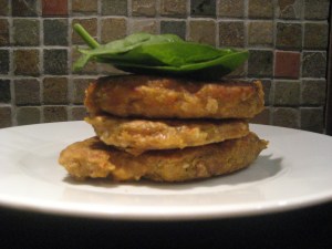 For this week’s new food, I reacquainted myself with my old culinary delights at The Cancer Project. I actually made this recipe for the first time while teaching a cooking class a few months ago (yes, bold!), but I made some short-cuts this time around. It’s modified from The Cancer Project’s Garbanzo Burgers. What I love about these veggie burgers is that they’re easy and cheap to make, they actually stick together, and they’re not made from manipulated soy isolates. Plus, they’ve got a kick-your-pants curry flavor, which is totally scrumptious!